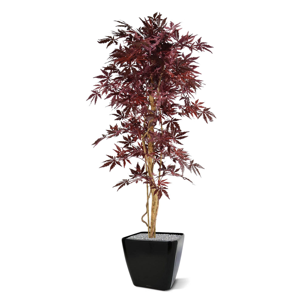 Wow, wow en nog eens wow! Als u op zoek bent naar een kunstboom waar u én een grote ruimte mee kan vullen, én echt indruk achter wil laten, dan bent u aan het goede adres! De Acer, ook wel Japanse esdoorn genoemd, is een boom uit de zeepboomfamilie en kleurt jaarlijks geel, rood of oranje rond het najaar. Een echte herfstboom dus! Normaliter kunt u dus rond september pas van de boom genieten, maar met de Acer kunstboom van VerdeFlora kan dit wanneer u wil, waar u wil. Ook een meevallertje; deze bladeren kunnen, in tegenstelling tot levende bomen, niet uitvallen! De Acer burgundy is 145 cm lang en komt standaard in een plastic binnenpot, zodat u de kunstboom makkelijk in een grote sierpot kunt plaatsen. De afgebeelde sierpotten zijn tevens mee te bestellen met een meerprijs.