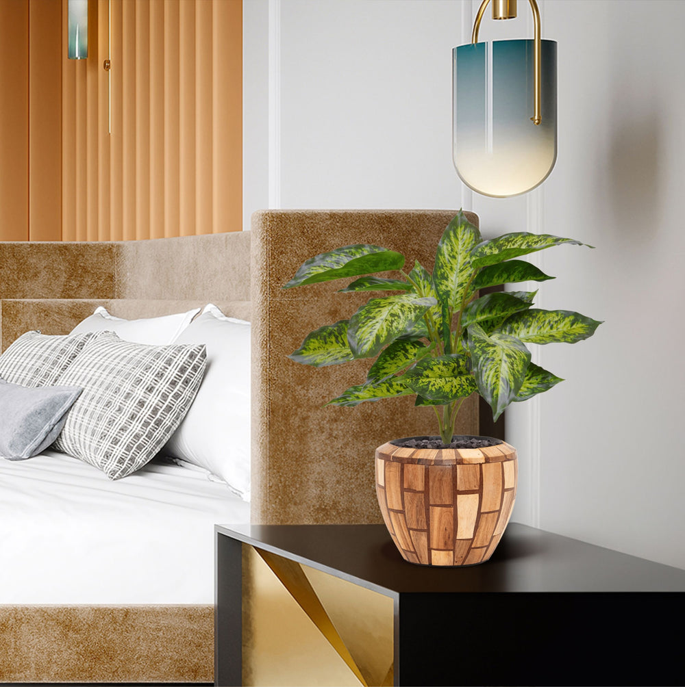 De Aglaonema Kunstplant heeft een compacte hoogte en diameter van elk 40 cm, doordacht vervaardigd om de weelderige schoonheid van zijn natuurlijke tegenhanger na te bootsen. De bladeren tonen een realistische mix van donkergroene tinten en hebben de kenmerkende brede, licht golvende randen, wat zorgt voor een authentieke uitstraling. De stam is ingetogen doch robuust, met een textuur die de vezelige kwaliteit van een echte plantenstam imiteert, waardoor de algehele visuele getrouwheid wordt verhoogd. Elke plant wordt zorgvuldig verpakt in een stevige, gestroomlijnde doos, om ervoor te zorgen dat deze in onberispelijke staat arriveert, klaar om elke ruimte te verfraaien met zijn weelderige aantrekkingskracht.