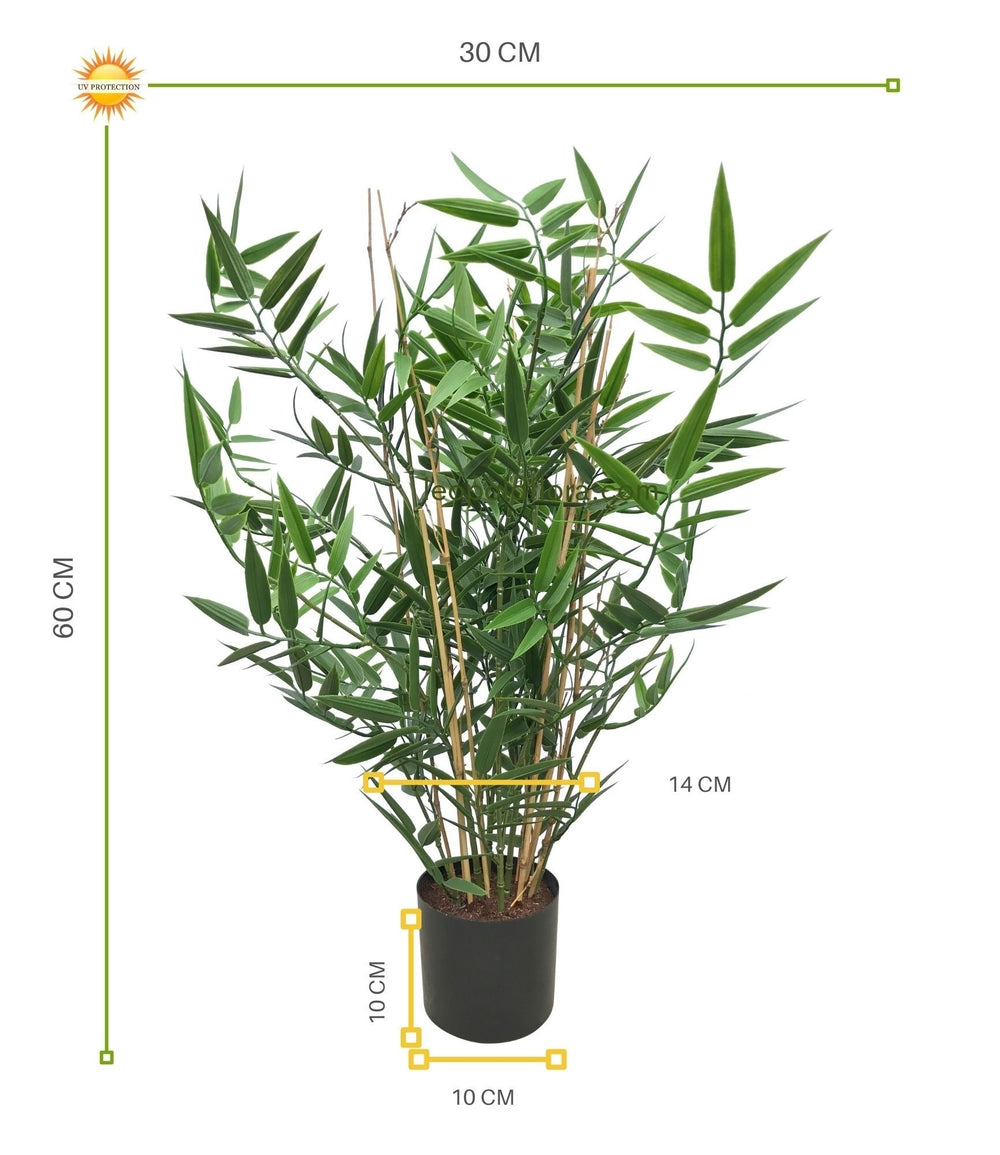 Deze kunstplant maakt deel uit van de speciale UV-bestendige imitatie bamboe-serie en is verkrijgbaar in verschillende maten. Bijzonder geschikt voor gebruik in de tuin.