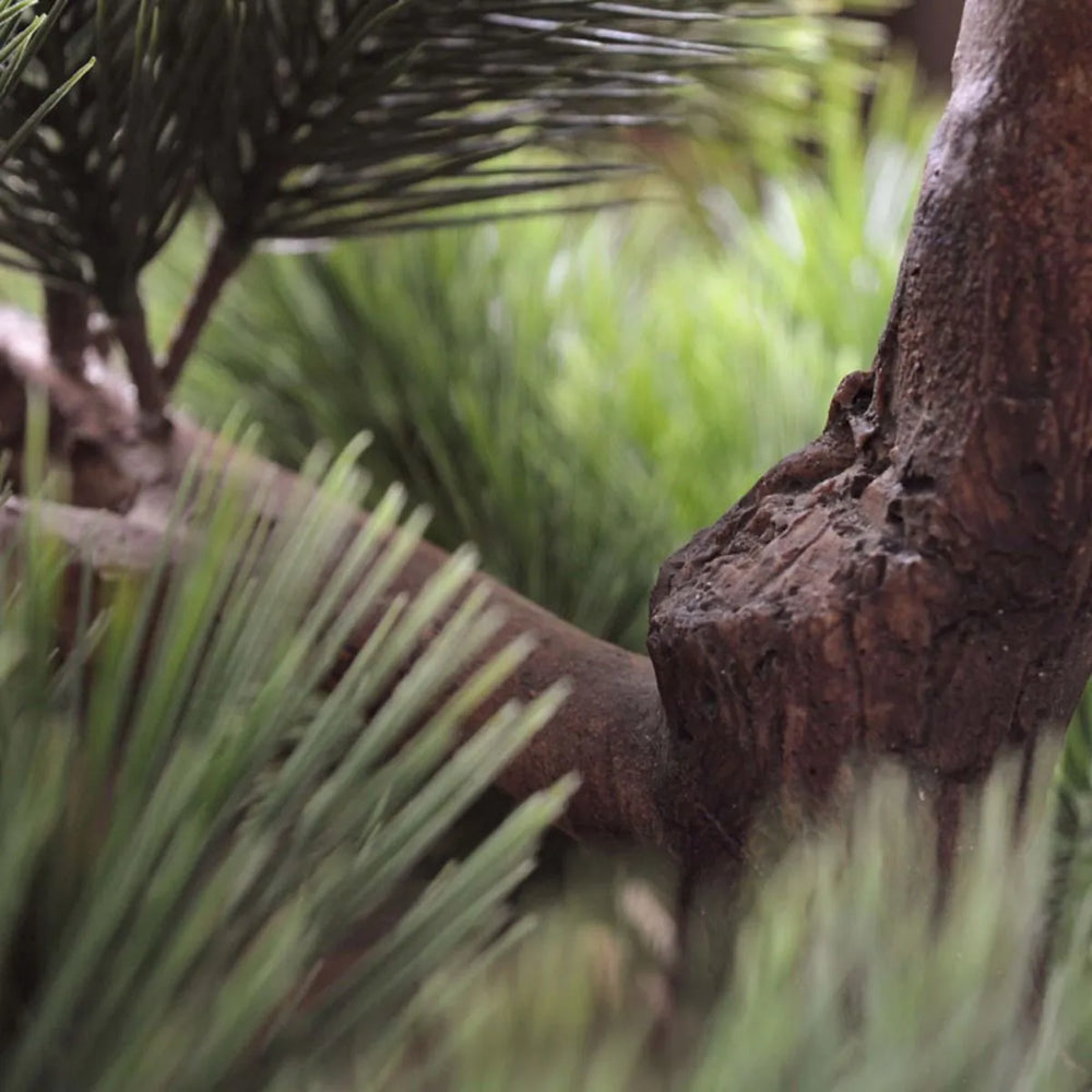 De hoofdstam van deze den is gemaakt van kunststof met relevante houten zijtakken. Net als al onze Pinus kunst bonsaibomen zijn de dennennaalden gemaakt van de allerbeste grondstoffen, zodat ze lang buiten kunnen staan.