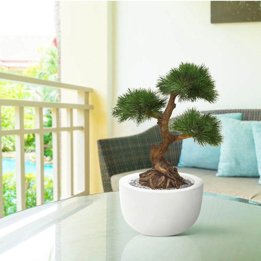 Deze kleine kunst bonsai is qua design en realistische uitstraling echt de show op elk terras. Deze complete buitenbonsai wordt veel gebruikt in Japanse tuinen. Het ontwerp van deze kleine Japanse bonsai, met zijn knoestige stam en meerdere lagen, geeft veel karakter en sfeer aan deze volledig onderhoudsvrije bonsai. Dit juweeltje, de Pinus Bonsai, komt het beste tot zijn recht in een mooie plantenbak op de tuintafel of een zuil. Natuurlijk kunt u deze mini-bonsai ook binnen gebruiken, bijvoorbeeld buiten in de zomer en binnen in de winter. De kunstboom is zo gemaakt dat hij altijd buiten kan blijven staan, maar dat hoeft natuurlijk niet.