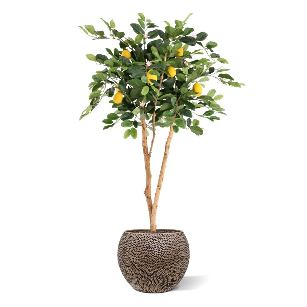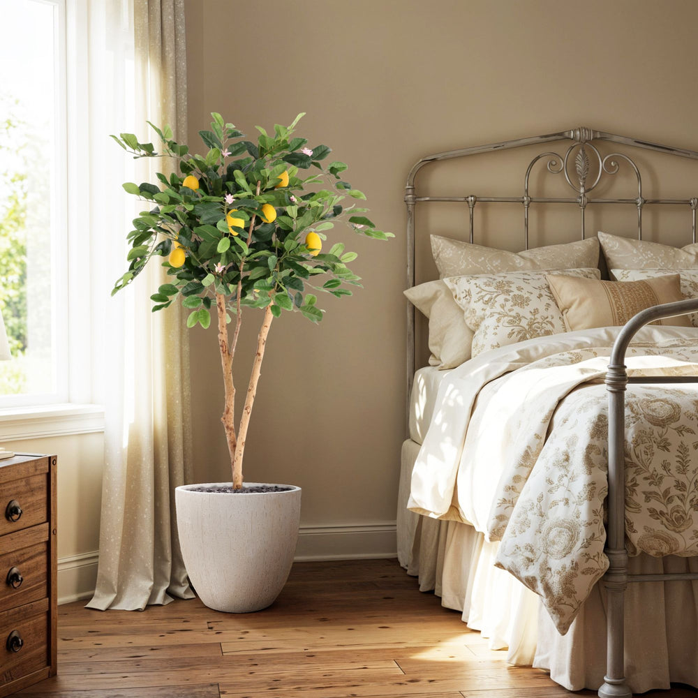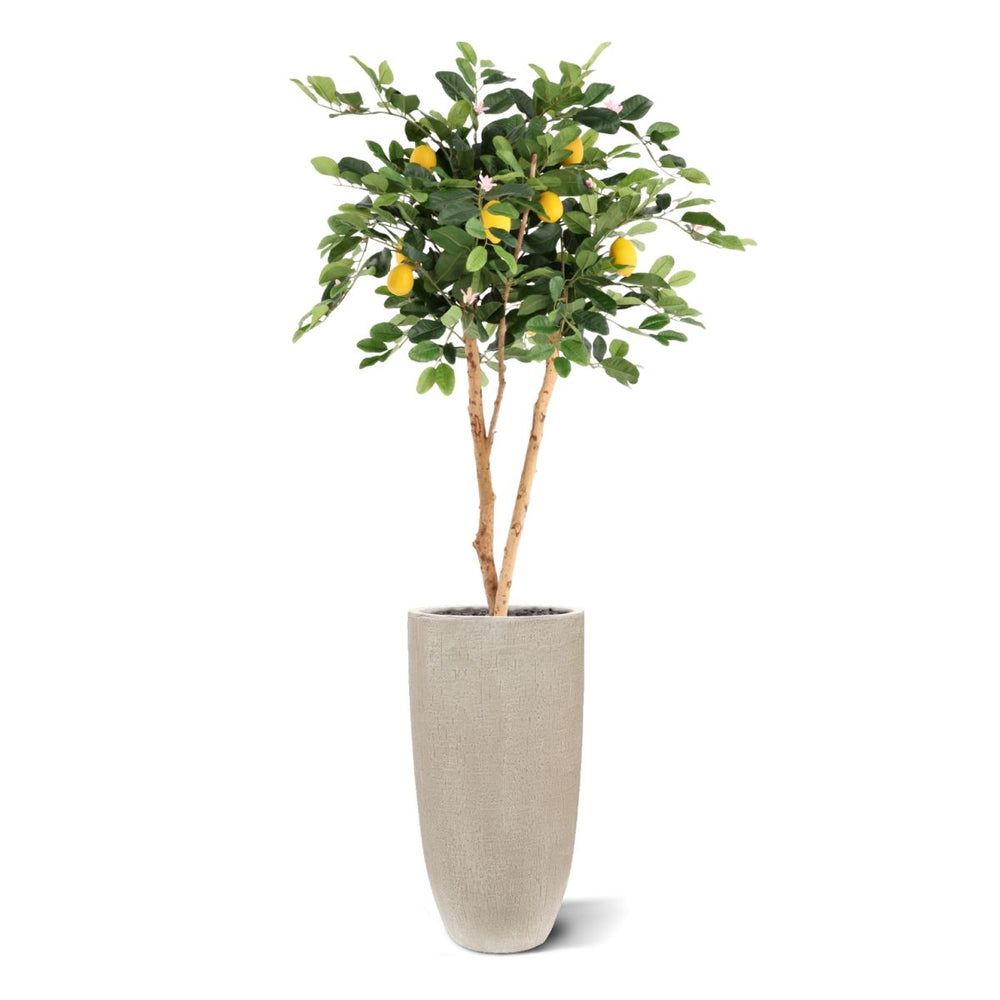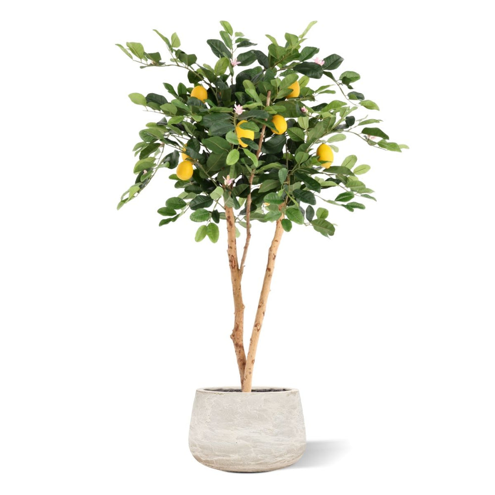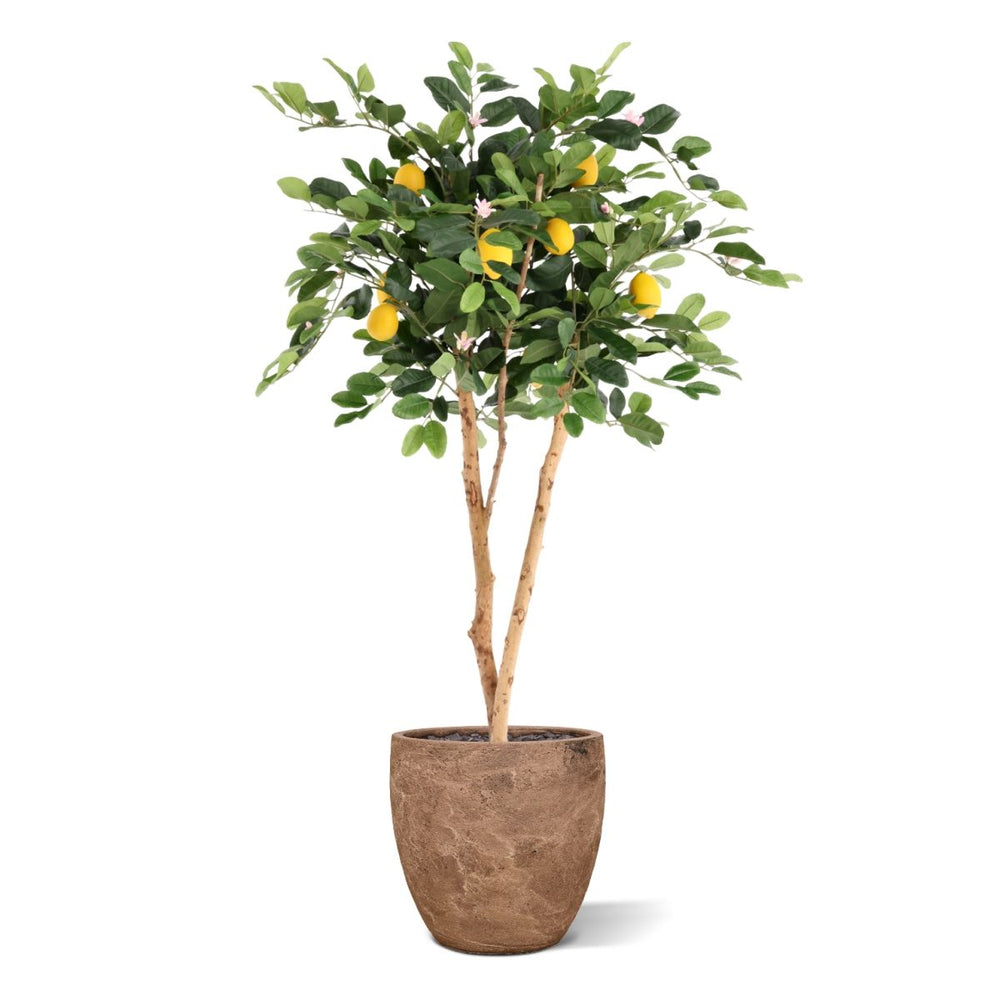 De Citroen Kunstplant 120cm brengt een frisse, mediterrane uitstraling in jouw interieur, zonder dat je omkijken hebt naar onderhoud. Met zijn volle kroon, glanzend groene bladeren, realistische citroenen en subtiele bloesem oogt deze Citroen kunstplant bijzonder natuurgetrouw. De combinatie van natuurlijke kleuren en een verfijnde stamstructuur maakt deze Kunst citroen tot een stijlvolle blikvanger in zowel huiselijke als professionele omgevingen. Dankzij het compacte maar rijke silhouet past hij perfect in woonkamers, keukens, serres, kantoren en horecagelegenheden.