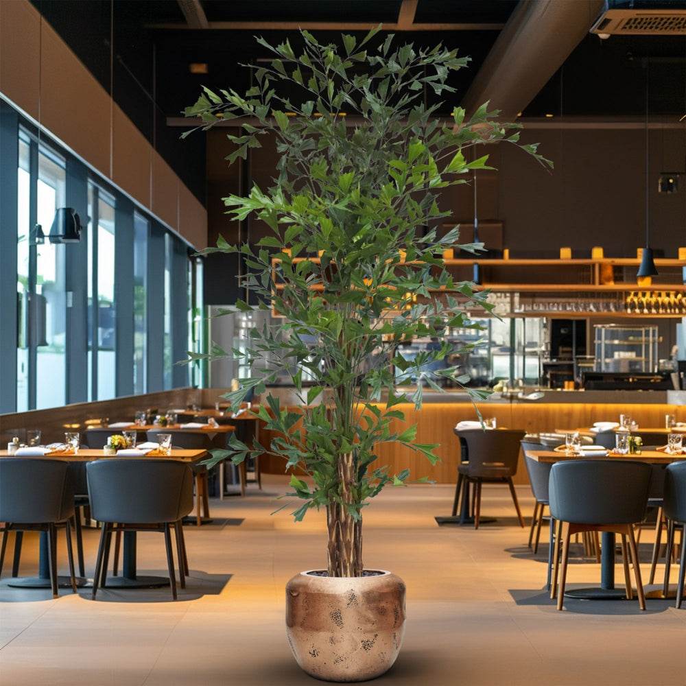De Fishtail Kunstpalm Deluxe XXL 300cm is een indrukwekkende blikvanger die elke ruimte direct een luxe en tropische uitstraling geeft. Met zijn royale hoogte van 300 cm en volle breedte van 160 cm is deze kunstpalm ideaal voor ruime woonkamers, kantooromgevingen, horecazaken en stijlvolle entrees. De karakteristieke fishtail bladeren creëren een speels en natuurlijk silhouet, waardoor deze Kunstpalm bijna niet van echt te onderscheiden is. De perfecte keuze wanneer je zoekt naar een hoogwaardige XXL kunstpalm met een krachtige uitstraling.