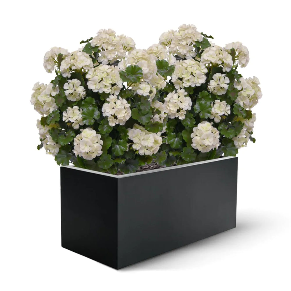 Door het grillige en zeer grillige Nederlandse weer hebben echte geraniumplanten het moeilijk om te overleven op het terras. Een goede wind, een hevige regenval van een brandende zon is een hele opgave. Het is voor de plant lastig om deze prachtige geraniumbloemen lang te laten bloeien. Met de aankoop van deze prachtige bolvormige geraniumkunstplant is uw ergernis direct van de baan. Langdurig prachtige crème witte, effectieve bloemen, wat wil je nog meer?