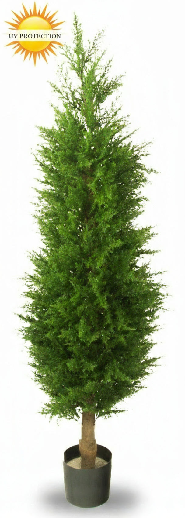 Deze kunst conifeer is speciaal ontworpen voor buitengebruik, omdat de grondstoffen van het kunststof extra uv-bescherming bevatten. Deze extra synthetische materialen zijn speciaal gemaakt en ontwikkeld door VerdeFlora.