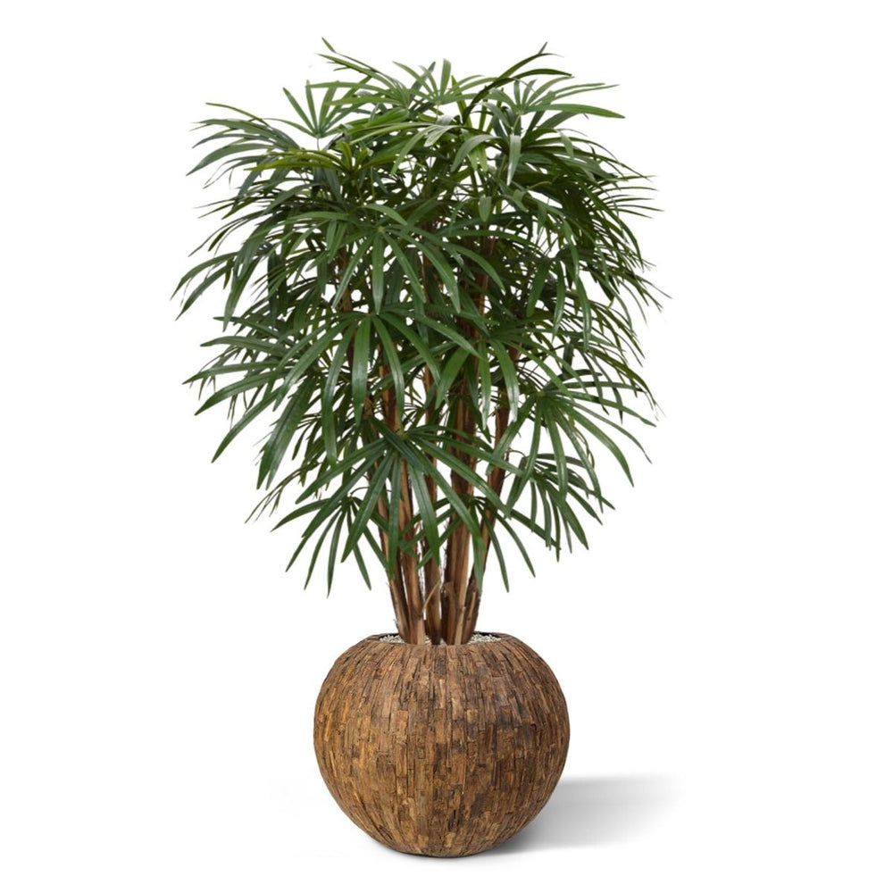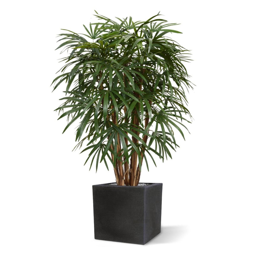 De Raphis Palm, ook wel bekend als ‘The Lady Palm’, vindt zijn oorsprong in Zuid-China en Taiwan. Als je goed naar de bladeren kijkt, dan zie je dat het familie is van de Fan Palm.
